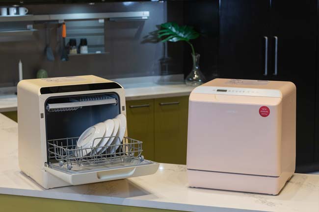ฉีกกฎเครื่องล้างจานแบบเดิมๆ ด้วยดีไซน์โค้งมน พร้อมสีสันพาสเทล มีให้เลือกทั้งสีครีม และสีชมพู ขนาดเล็กกระทัดรัด 428x425x456 มม. สามารถวางบนเคาน์เตอร์ครัวได้ เหมาะสำหรับการตกแต่งบ้านในยุคนี้