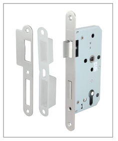 ตลับกุญแจพร้อมเพลทรับกลอนทรงโค้งและลิ้นกุญแจผลิตจากสแตนเลสสตีล เกรด 304 มาตรฐานระยะการติดตั้งมือจับถึง ไส้กุญแจ 72 มม. และ ระยะเจาะตลับกุญแจ 55 มม.