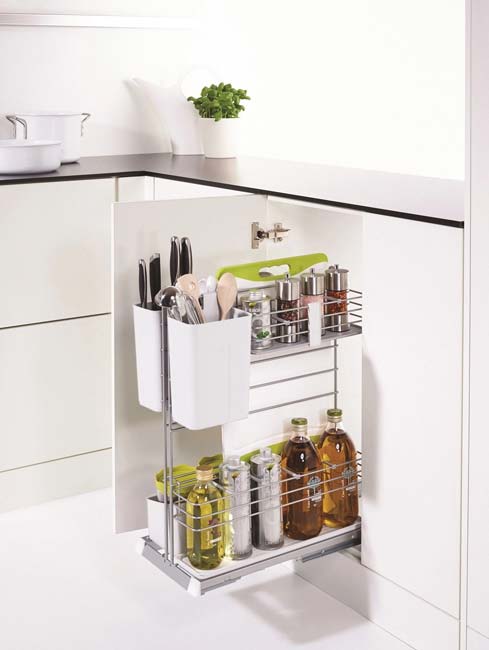 ต้องสำรวจก่อนว่าพื้นที่เหมาะกับตู้เก็บของแบบใด รูปตัวไอ (I) รูปตัวยู (U) หรือรูปตัวแอล (L) มีระยะและขนาดพื้นที่เท่าไร เพื่อกำหนดขนาดของตู้ได้พอดี และอย่าลืมคำนึงถึงจุดชื่อมต่อระบบไฟ สำหรับแสงส่องสว่างภายใต้ตู้ด้วย จากนั้นเลือกกำหนดฟังก์ชั่นการใช้งานที่ออกแบบไว้สำหรับการเก็บของโดยแยกประเภทต่างๆ ทั้งเครื่องครัว จานชาม อาหารกระป๋อง ที่ถูกคำนวณไว้อย่างเสร็จสรรพในการใช้สอยพื้นที่จัดเก็บอย่างไม่เสียเปล่า ซึ่งนวัตกรรมอุปกรณ์จัดเก็บจากเฮเฟเล่ ได้มีการคำนวณและออกแบบอุปกรณ์จัดเก็บให้รองรับกับทุกรูปแบบการใช้งาน จัดการกับทุกพื้นที่เล็กใหญ่อย่างลงตัว ซึ่งน่าจะถูกใจพ่อบ้าน แม่บ้าน เพราะครัวจะทั้งสวยและเป็นระเบียบ
