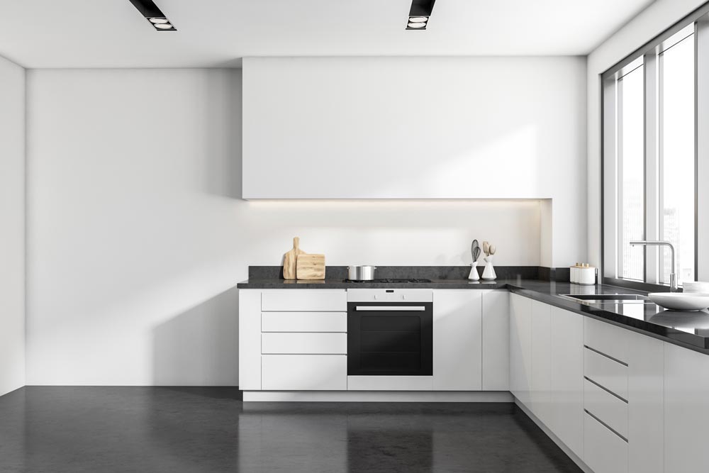 2. พื้นที่ 6 ตร.ม. ขึ้นไป ควรจัดวางครัวเป็นรูปตัว L (L-Shaped Kitchen) โดยการดีไซน์แบบนี้จะสามารถนำโต๊ะทานข้าวเล็กๆ มาวางตรงอีกมุมตรงข้ามเคาน์เตอร์ได้ หากมีพื้นที่เหลือพอ