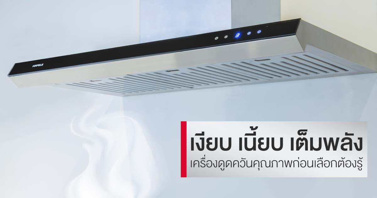 - หลายคนเลือกออกแบบห้องครัวให้มีแปลนเปิด แต่คงไม่มีใครอยากได้ยินเสียงเครื่องดูดควันดังกระหึ่ม สร้างความรำคาญเวลาคุณกำลังพูดคุย นั่งดูทีวี หรือนั่งรับประทานอาหาร นี่เป็นเรื่องท้าท้ายสำหรับผู้ผลิตที่ต้องควบคุมระดับเสียงของเครื่องเวลาทำงานให้อยู่ที่ 55 เดซิเบล หรือถ้าตัวเลขยิ่งน้อยก็ยิ่งสร้างความรำคาญน้อยเท่านั้น (60 เดซิเบลเป็นระดับเสียงของบนสนทนาทั่วไป) เครื่องดูดควันที่มีระบบมอเตอร์ติดตั้งด้านนอก และมีขนาดท่อดูดควันกว้าง จะช่วยลดเสียงการทำงานของเครื่องให้เบาลงได้