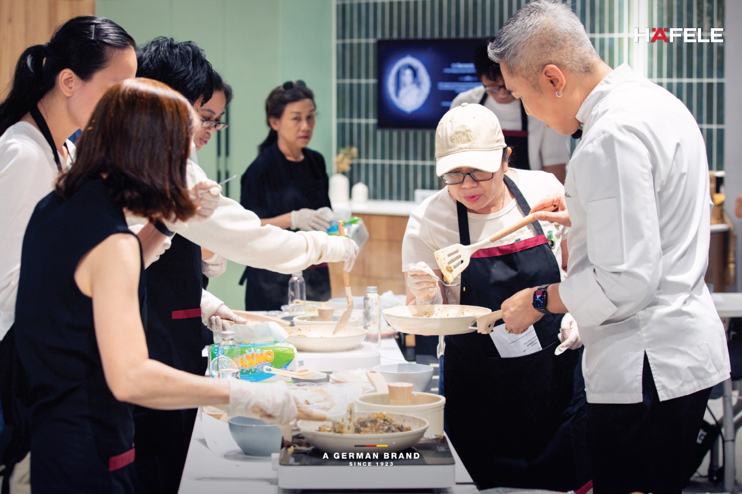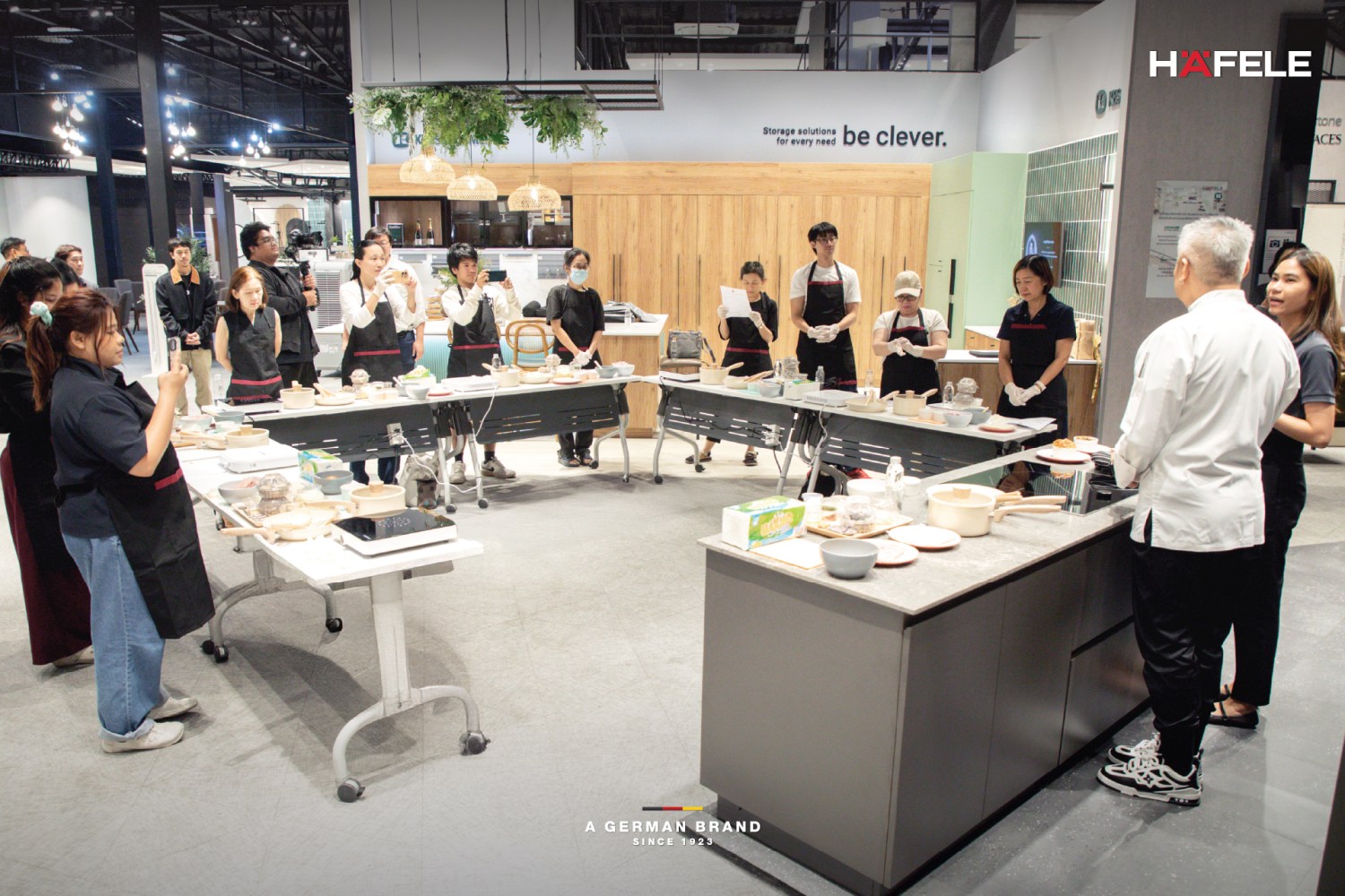 ผู้เข้าร่วมยังได้ลงมือทำจริงในช่วง Hands-on Workshop โดยใช้เตาอบ Häfele Sense Series ที่มาพร้อมฟังก์ชันอัจฉริยะ ช่วยให้การอบสมบูรณ์แบบตามสูตร นอกจากนี้ยังได้ใช้เตาอินดักชั่นและชุดเครื่องครัวจากเฮเฟเล่ ทำให้ทุกขั้นตอนของการปรุงอาหารได้ผลลัพธ์ออกมาอย่างสวยงาม