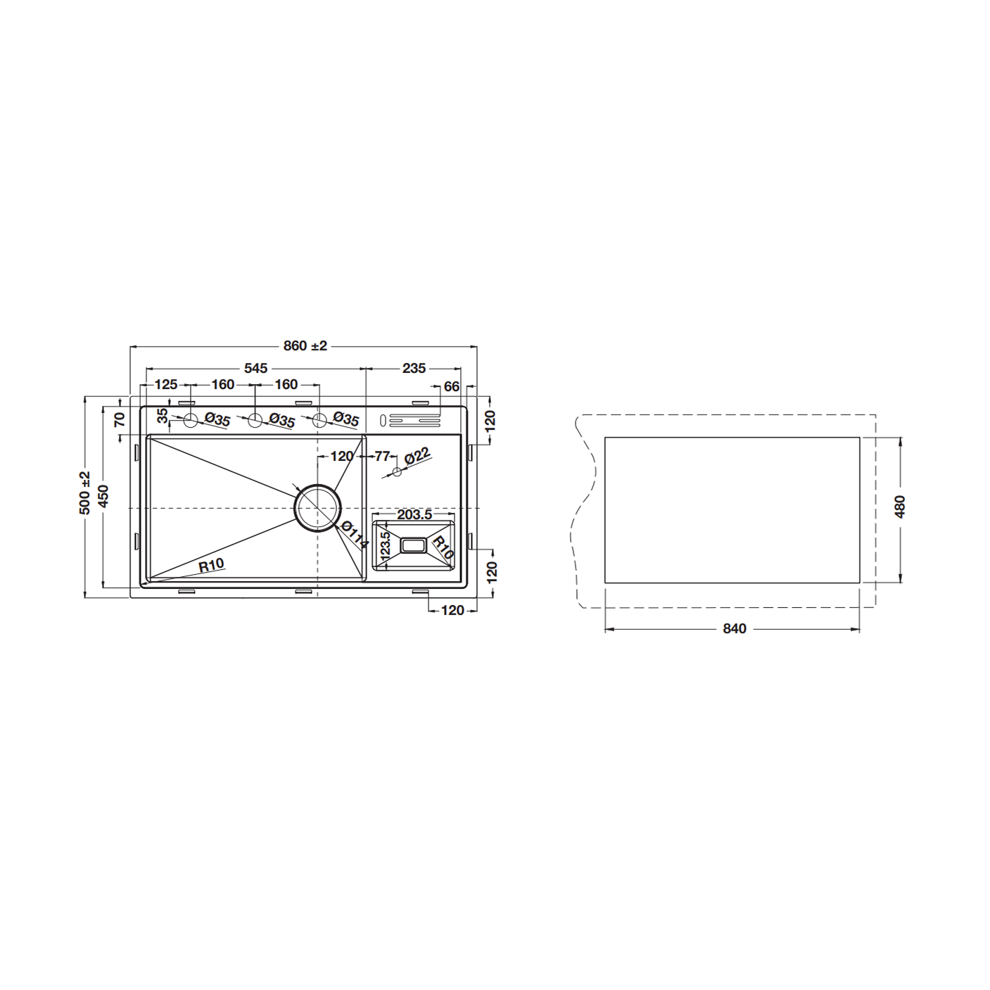 - ขนาดติดตั้ง : 840 x 480 มม.