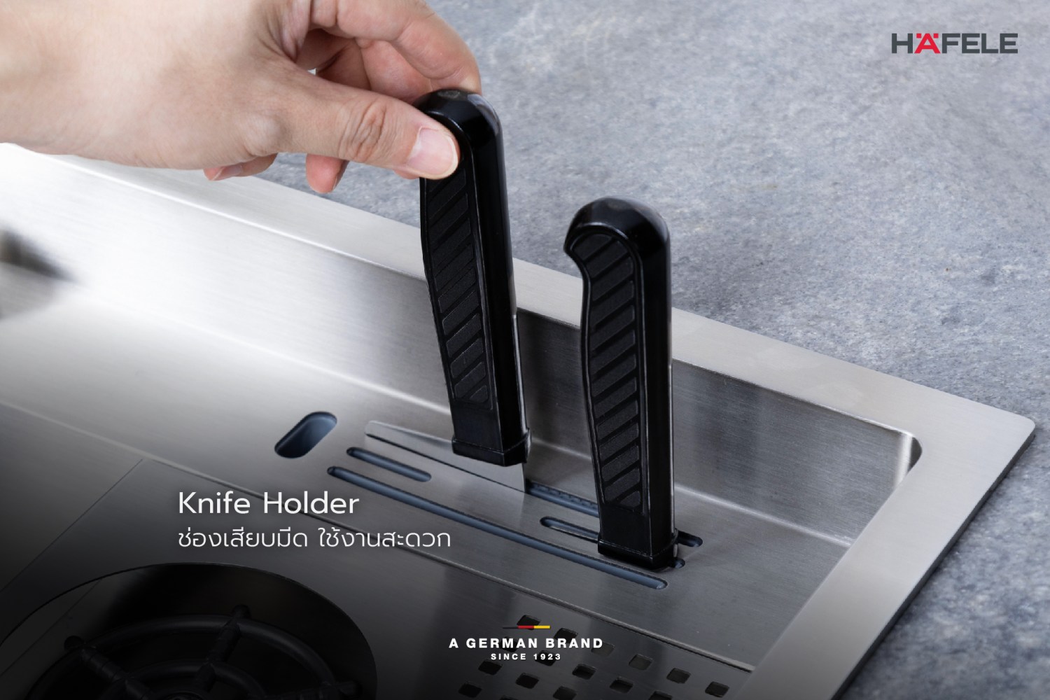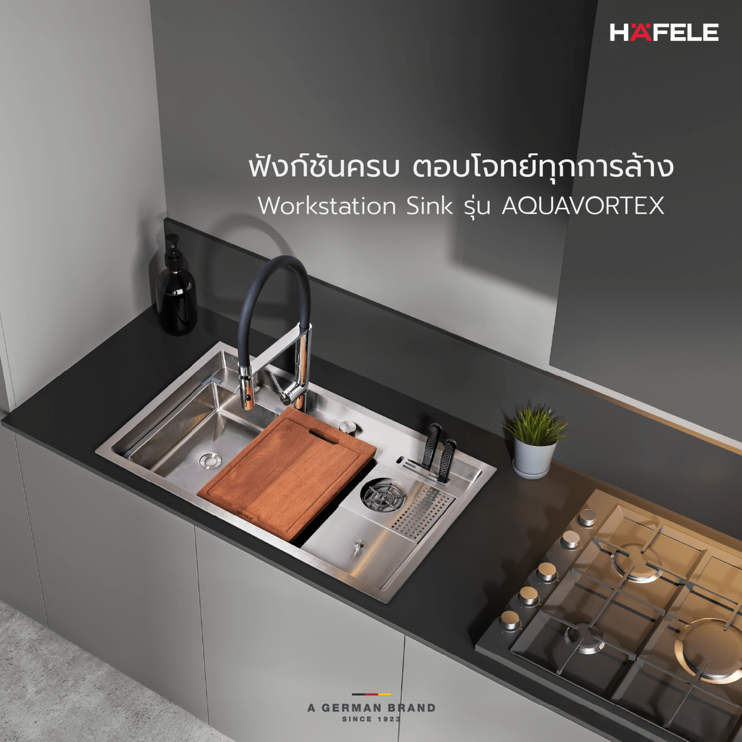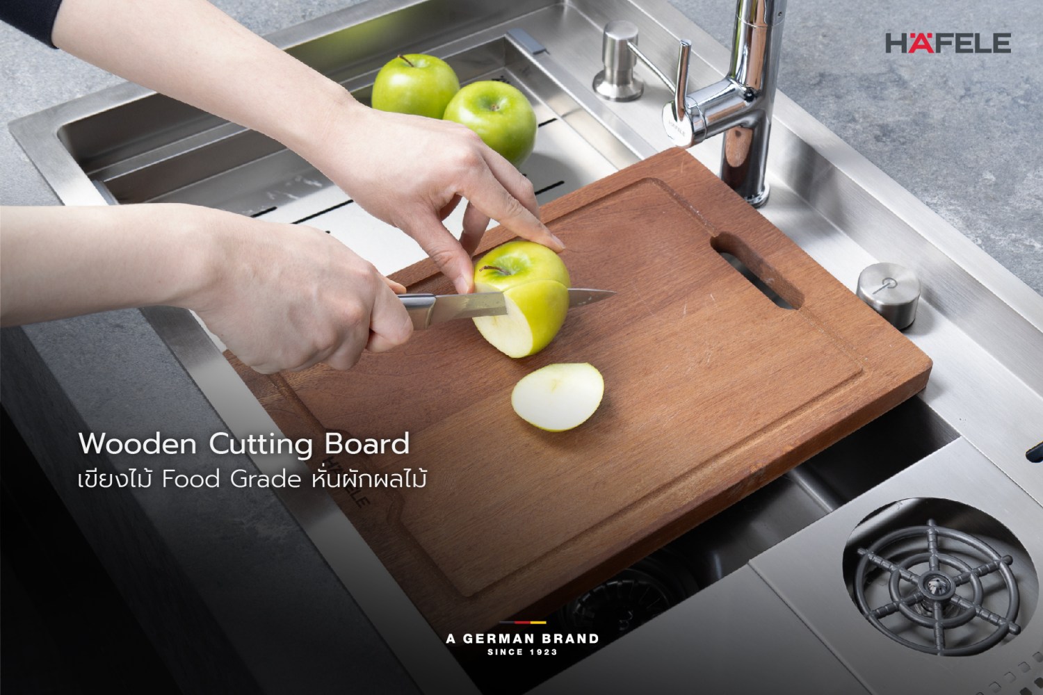 - อุปกรณ์: สะดืออ่างแบบ Pop-up ขนาด 3.5 นิ้ว, ท่อน้ำทิ้ง, ท่อน้ำล้น, ถาด, อ่างล้างอเนกประสงค์, ที่ล้างแก้ว, ที่คว่ำแก้ว, ถังขยะ, ช่องเสียบมีด, ขวดใส่น้ำยาแบบปั๊ม, เขียงไม้