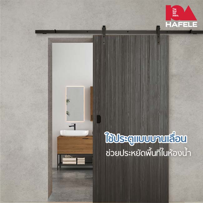 หากห้องน้ำมีขนาดเล็ก การใช้ประตูสวิงอาจกินพื้นที่เกือบครึ่งของห้องน้ำ หากเปลี่ยนมาใช้เป็นประตูบานเลื่อน ก็จะสามารถประหยัดพื้นที่ไปได้อีกเยอะ
