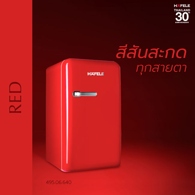 เฮเฟเล่ ผู้นำด้านเครื่องใช้ไฟฟ้า เอาใจคนรักครัวด้วย “ตู้เย็นมินิบาร์ เรโทร” (Retro Mini bar) ตู้เย็น 1 ประตู ดีไซน์วินเทจย้อนยุค ดีไซน์โค้งมนที่เป็นเอกลักษณ์ฉบับ Hafele มีให้เลือก 4 สี คือ สีแดง สีครีม สี Gardenia Beige และ สี Gardenia Blue เป็นตู้เย็นขนาดเล็ก กะทัดรัด ประหยัดพื้นที่ใช้สอย พร้อมฟังก์ชันการใช้งานที่หลากหลาย ไม่ว่าจะเป็น