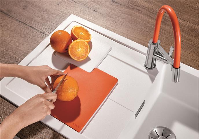 – Orange อ่างล้างจานสีส้มสดใส สีโทนร้อนที่ช่วยเพิ่มความสนุกสนานแบบไม่จำเจให้กับห้องครัว