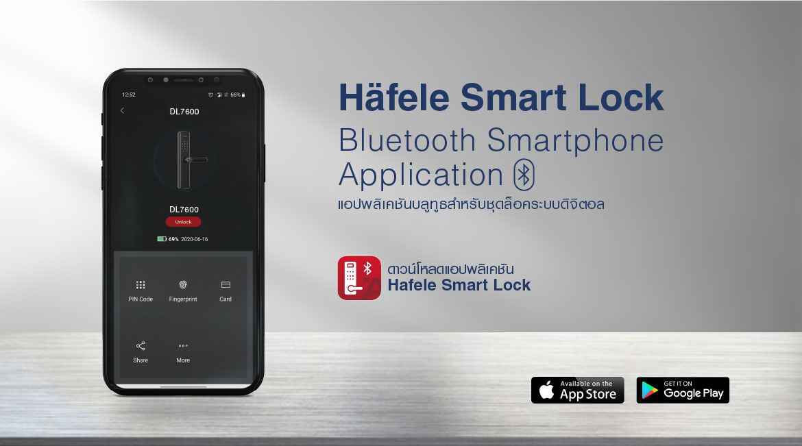 – ปลดล็อกด้วยบลูทูธคีย์ ผ่านแอปพลิเคชัน Häfele Smart Lock