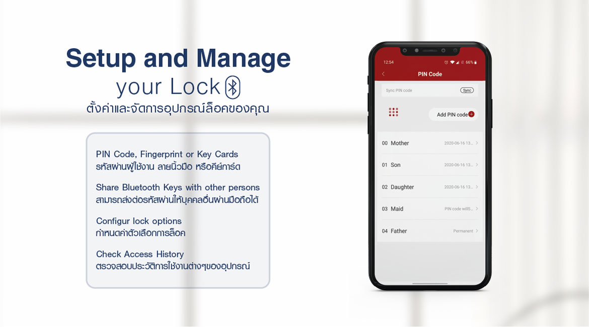 - ง่ายต่อการควบคุมและตั้งค่า ด้วยแอปพลิเคชัน Häfele Smart Lock