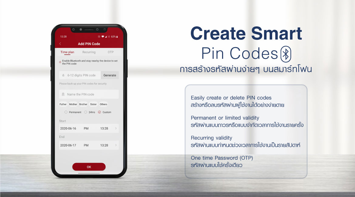 – รหัสผ่าน บันทึกได้สูงสุด 10 ชุด(ตัวเลข 6 -12 หลัก)