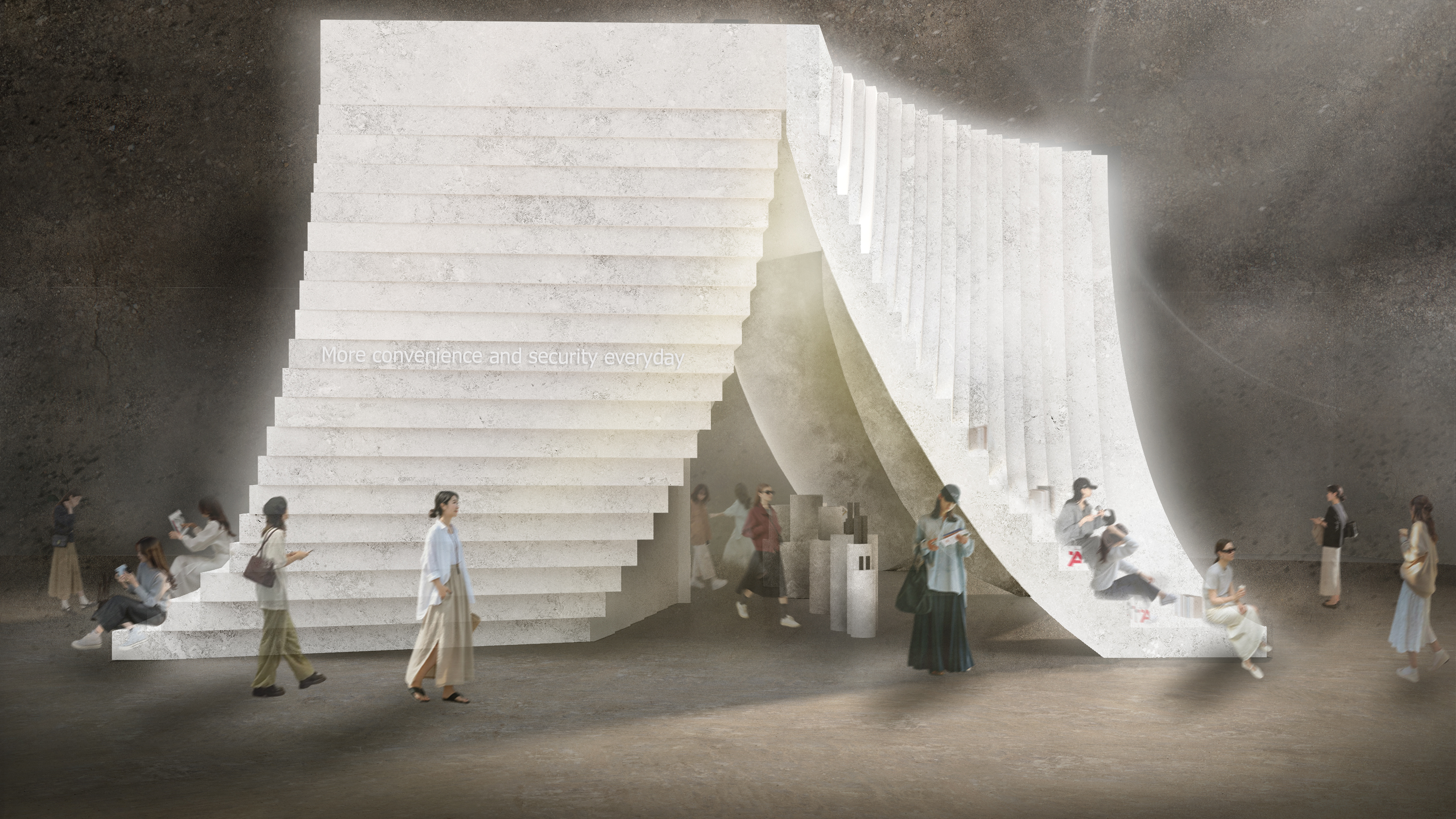 พาวิลเลียนที่เสมือนเป็น “ภูมิประเทศ” ให้ทุกคนได้เดินสำรวจ สัมผัส และได้เป็นส่วนหนึ่งของสถาปัตยกรรมที่อยู่ร่วมกันอย่างลงตัวระหว่าง “เทคโนโลยี” กับ “ธรรมชาติ” และสร้าง “ภูมิทัศน์” ใหม่ของการอยู่อาศัยใช้ชีวิต ที่ความทันสมัยของเทคโนโลยี ความหลากหลายของผู้คน และสุนทรียศาสตร์ เชื่อมต่อกันอย่างไร้รอยต่อ