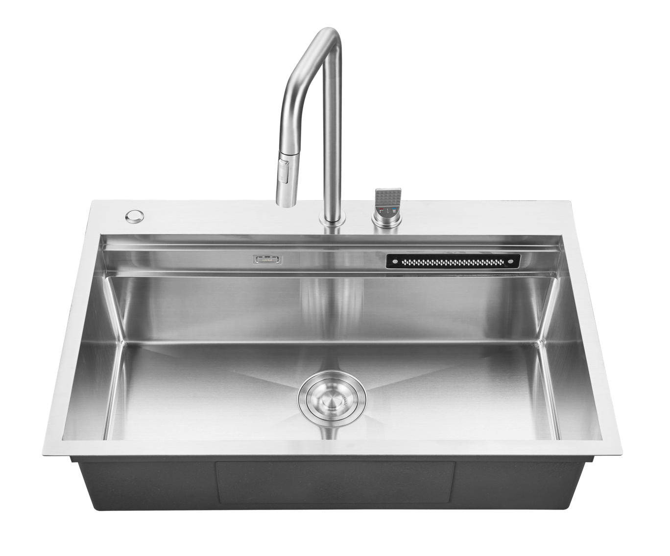 • Equipment: 3.5-inch sink drain, drain pipe, overflow pipe, pull-out mixer tap, vegetable and fruit washing basket, vegetable and fruit washing basin, and wooden cutting board.