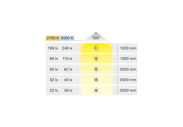 Colour control directly via remote controls from the Connect Mesh product range or Smartphone. Installation of the free Häfele Connect Mesh app required.
