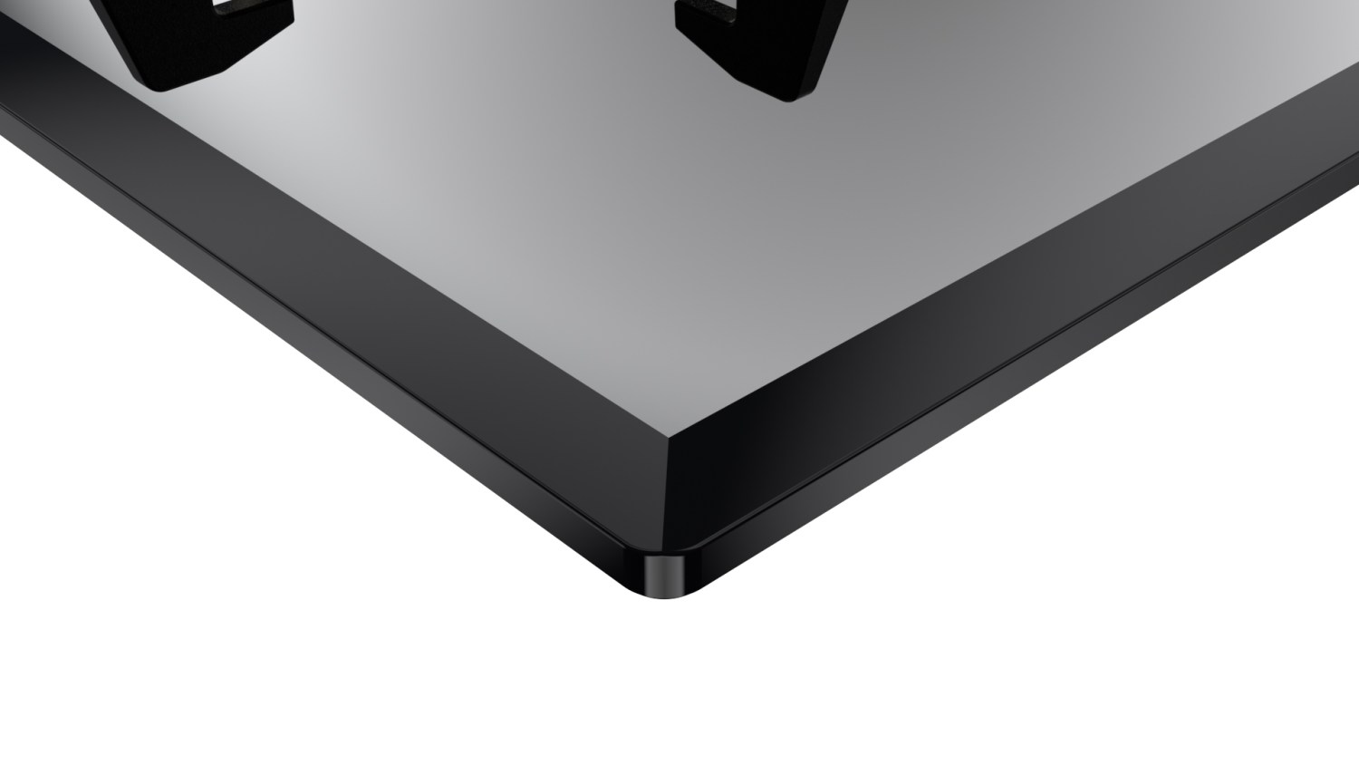 • Material: Black tempered glass surface (8 mm thick) with beveled edges on all 4 sides.