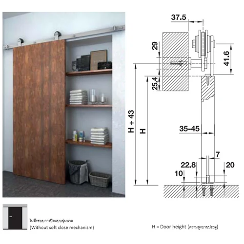 • For single wooden sliding doors.