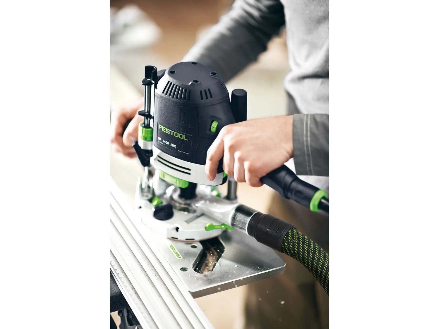 Compatible with Festool guide rails for straight milling applications.