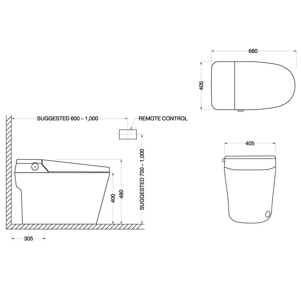 • Includes remote control, water shut-off valve, and odor-trapping wax.