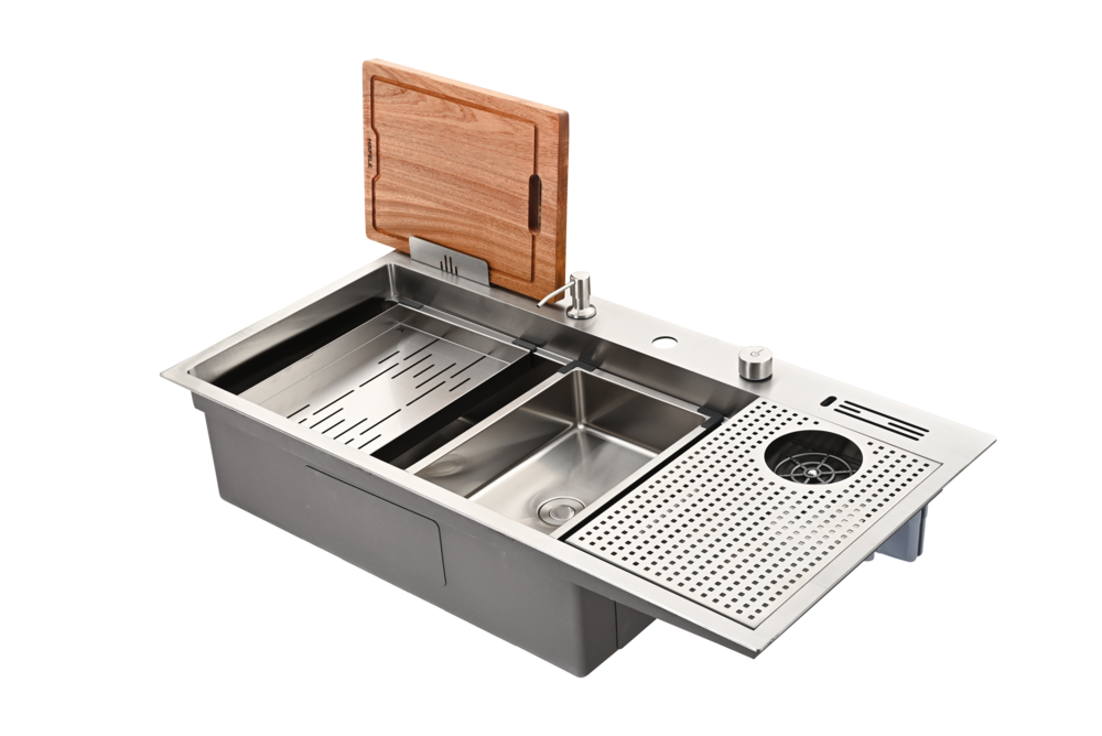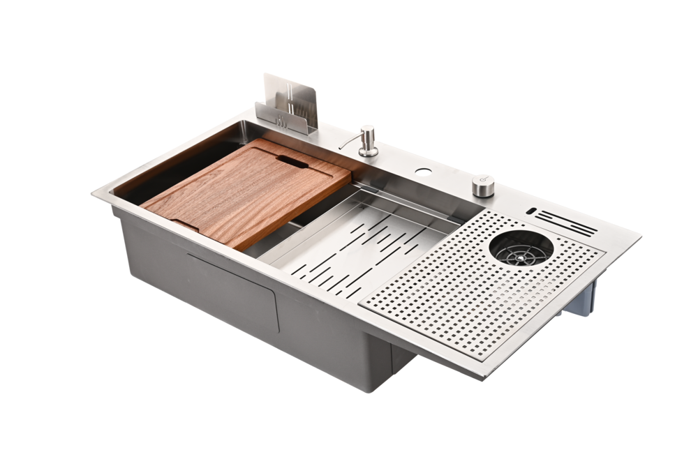 • อุปกรณ์: สะดืออ่างแบบ Pop-up ขนาด 3.5 นิ้ว, ท่อน้ำทิ้ง, ท่อน้ำล้น, ถาด, อ่างล้างอเนกประสงค์, ที่ล้างแก้ว, ที่คว่ำแก้ว, ช่องเสียบมีด, ขวดใส่น้ำยาแบบปั๊ม, เขียงไม้, ที่เก็บเขียง
