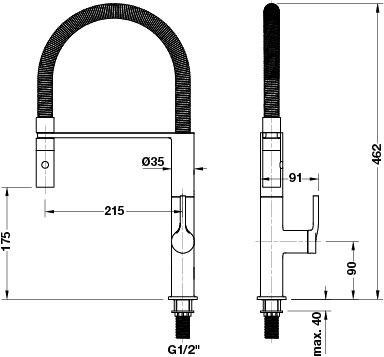 • ระยะจากฐานถึงปากก๊อก: 175 มม.