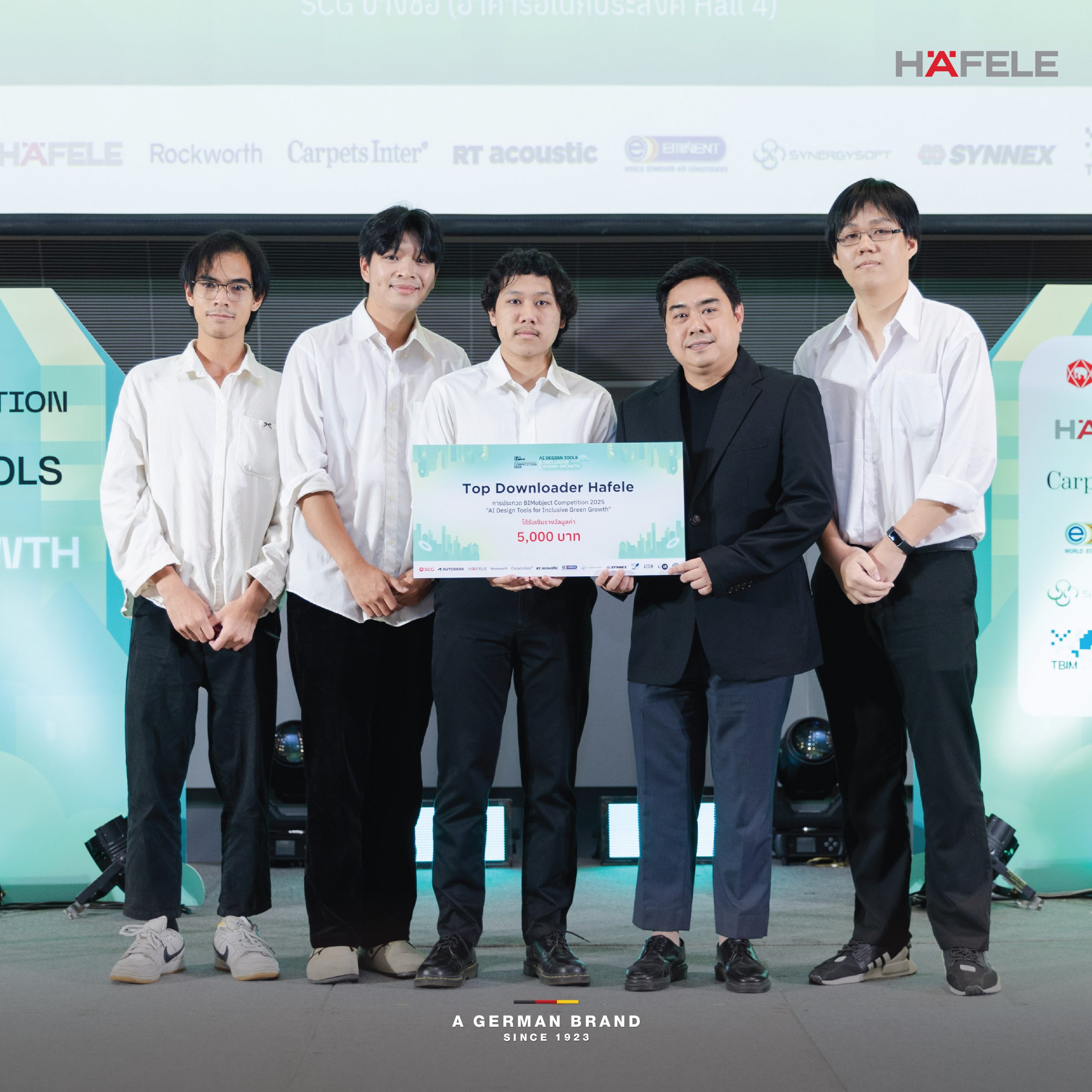 ทั้งนี้ Hafele Thailand ได้มอบ รางวัลพิเศษ Top downloader จาก Hafele Thailand ซึ่งผู้ที่ได้รางวัลนี้จะเป็นผู้ที่เข้าร่วมการประกวด และได้มีการดาวน์โหลดสินค้า Hafele Thailand สูงสุดและนำมาใช้ในการประกวดครั้งนี้ โดยผู้ได้รับรางวัลนี้ได้แก่