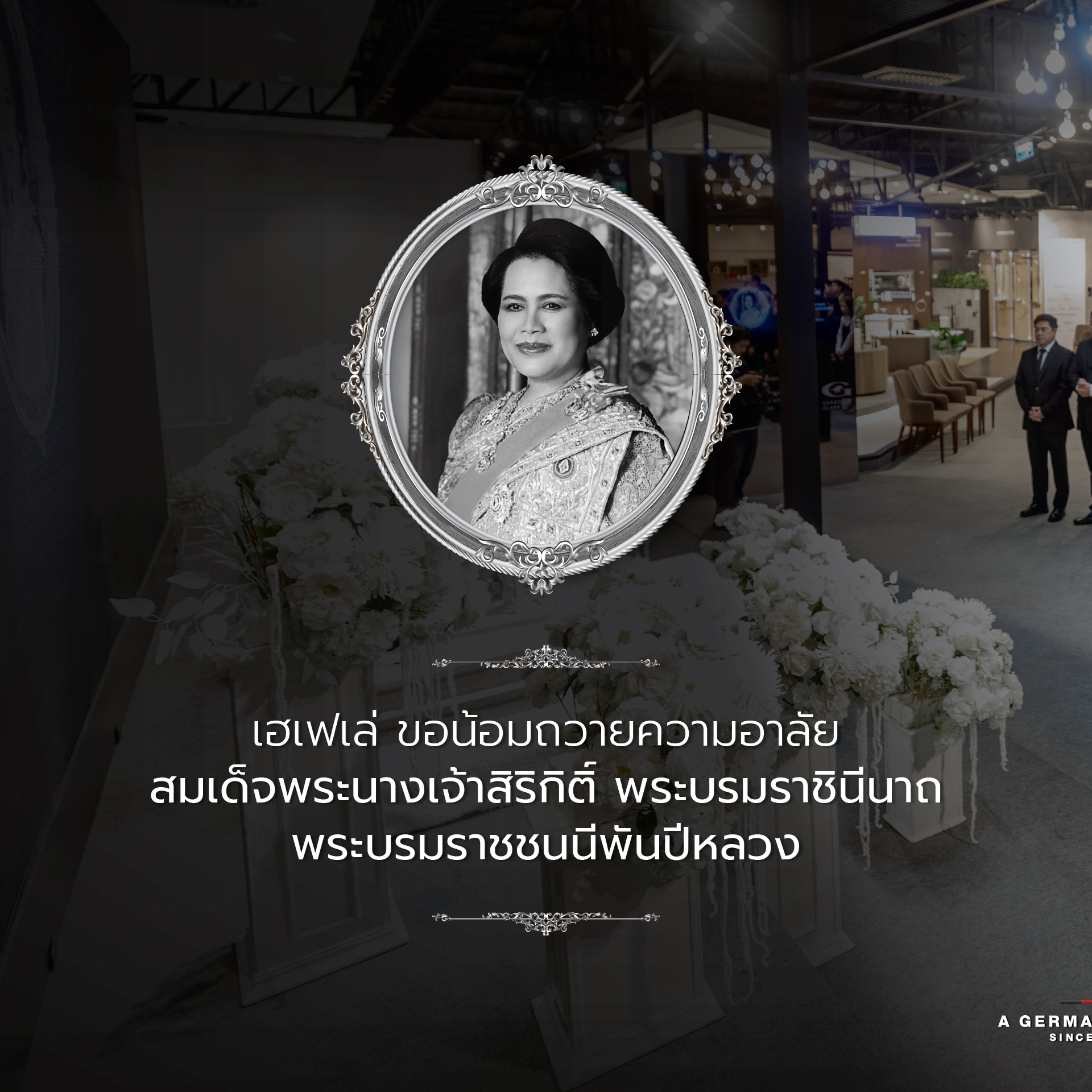 Häfele Thailand humbly expresses our deepest condolences on the passing of Her Majesty Queen Sirikit The Queen Mother, with profound gratitude for Her Majesty’s boundless benevolence and gracious kindness.