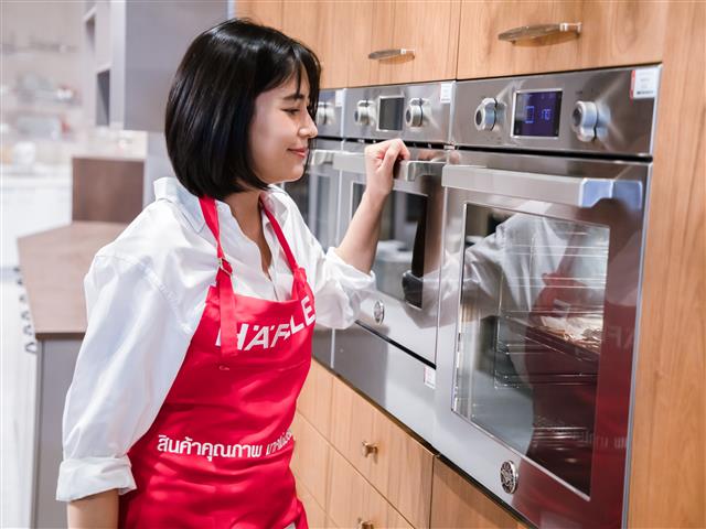*เกร็ดความรู้ ทำไมต้องเว้นระยะห่างของเนื้อคุ้กกี้ นั้นก็เพราะเมื่อโดนความร้อนเนื้อคุ้กกี้จะขยายใหญ่ขึ้น - จากนั้นเราก็จะนำไปอบกันเลย ตั้งเวลาอบไว้ประมาณ 15 นาที ค่ะ โดยเตาอบรุ่นนี้ (Multifunction แบบติดตั้งฝัง ซีรีย์โปรเฟสชันนอล) สามารถจุได้ถึง 76 ลิตร ทำให้อบขนมได้หลายๆ ถาดในครั้งเดียว ควบคุมการทำงานง่ายด้วย Knob และตั้งอุณหภูมิด้วยระบบดิจิตอล ใช้งานง่าย เพียงปลายนิ้วสัมผัส